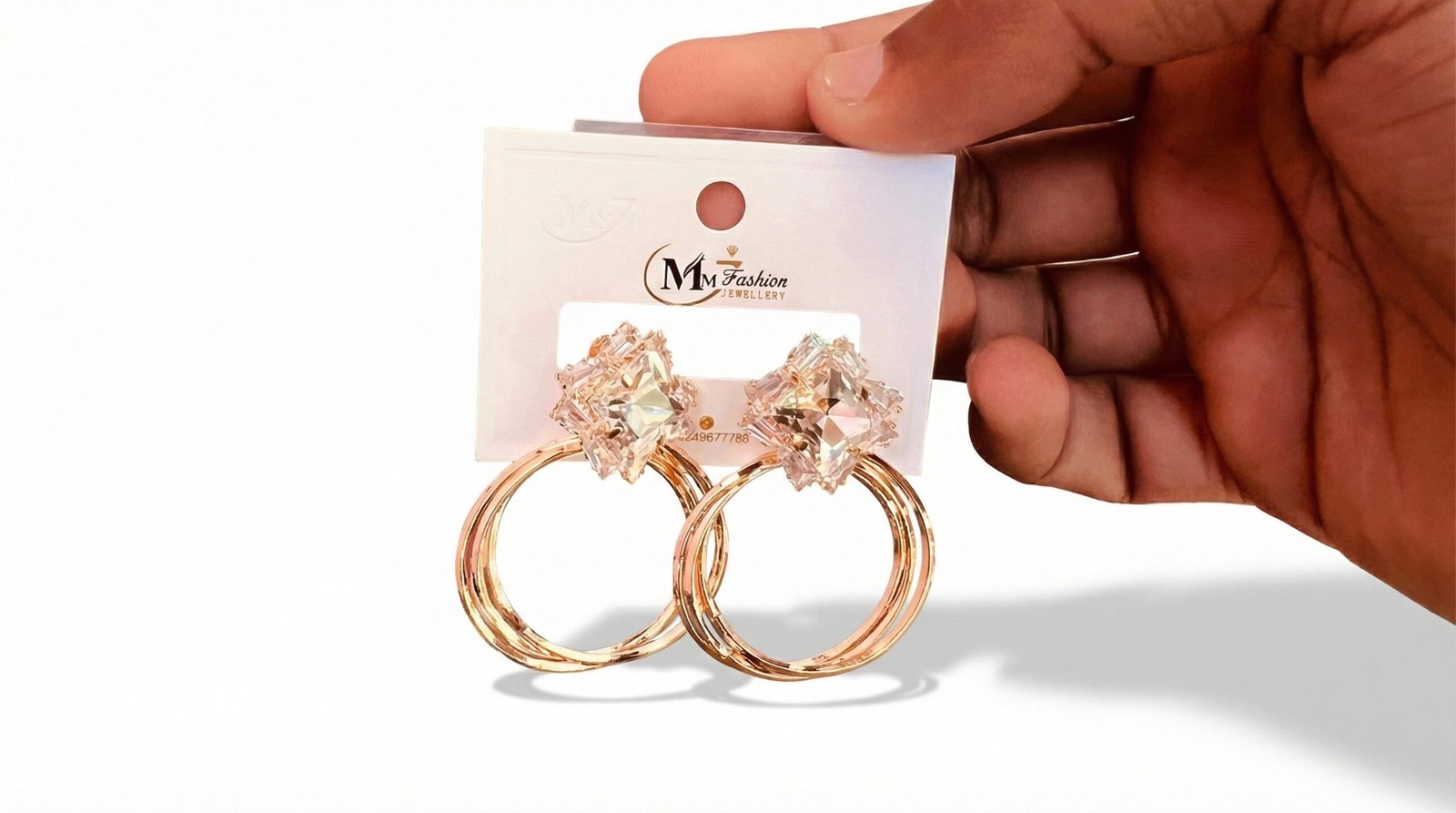 Be the first to review “Luxury Rose Gold Crystal Hoop Earrings for Women – Square Cut Stone Designer Party Wear Earrings”