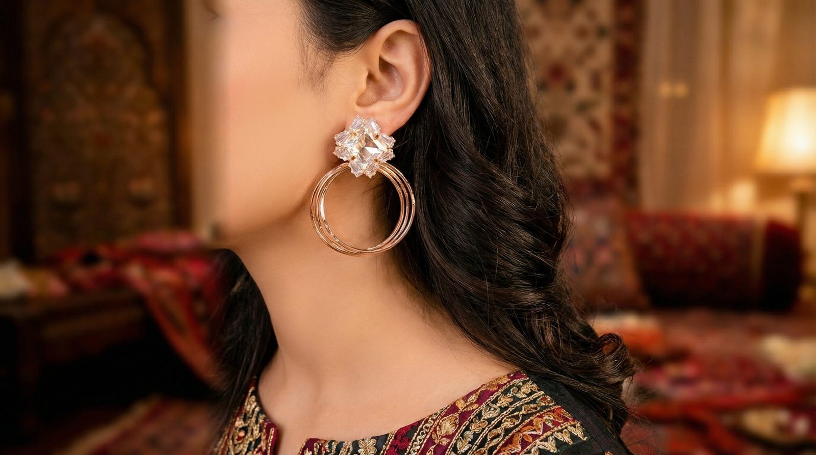 These earrings are ideal for women who love statement accessories and want to add a touch of glamour to their look.