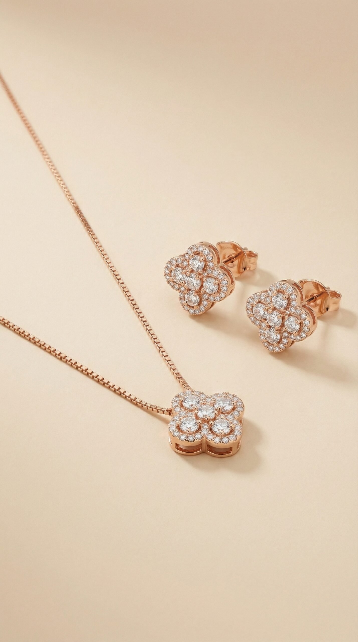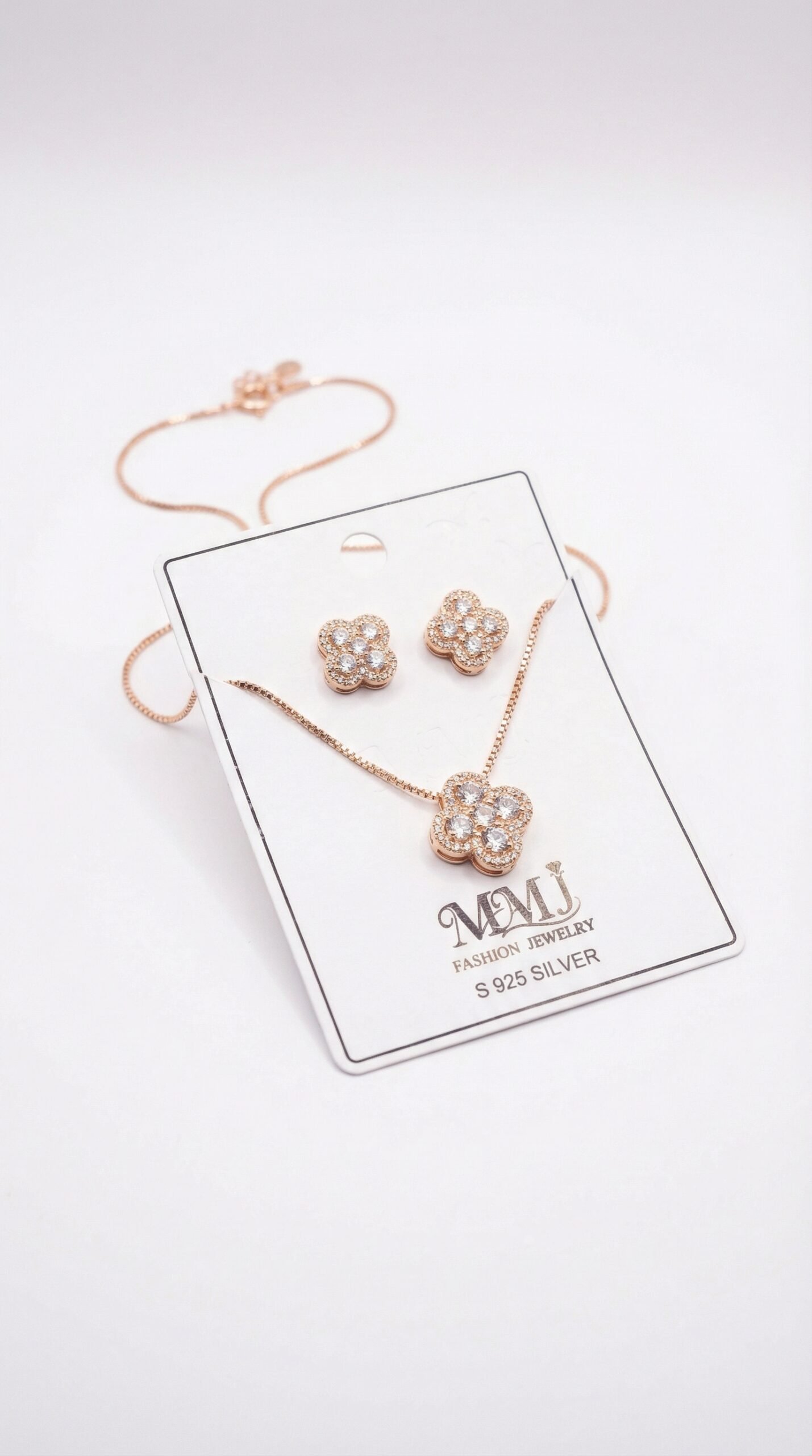 Be the first to review “S925 Sterling Silver Rose Gold Flower Jewelry Set for Women – Crystal Pendant Necklace & Stud Earrings Set”
